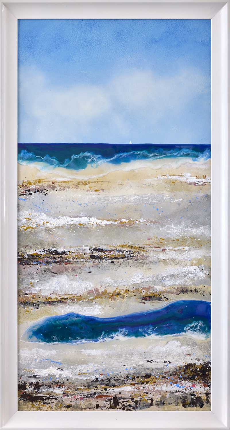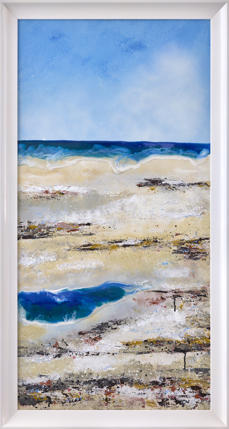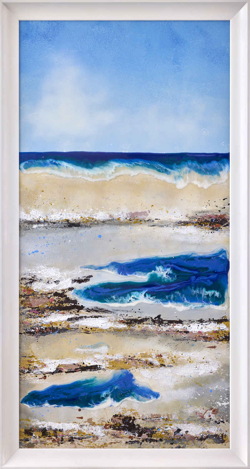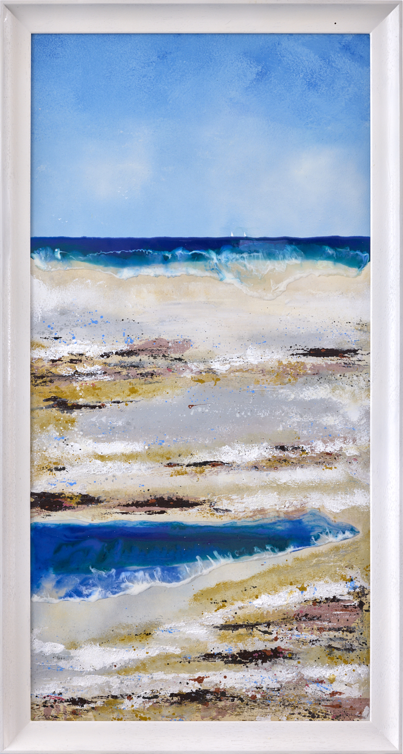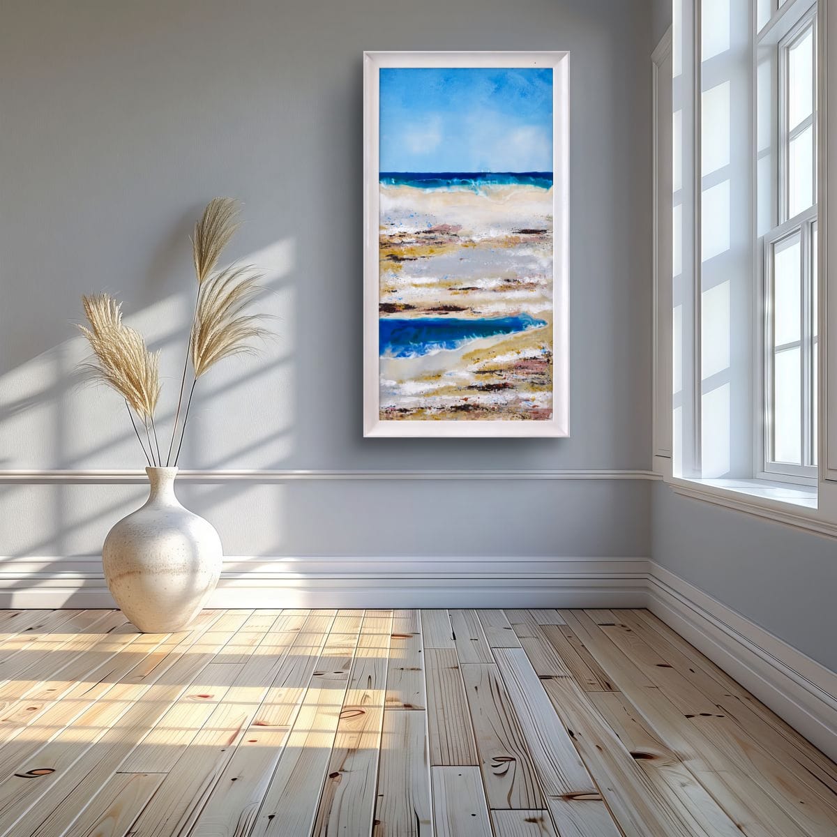Discover a striking quartet of original coastal paintings, each a unique exploration of texture, movement, and atmosphere. Crafted using a sophisticated blend of acrylic, sand, and resin, these large-scale works (50 x 100 cm each) evoke the …